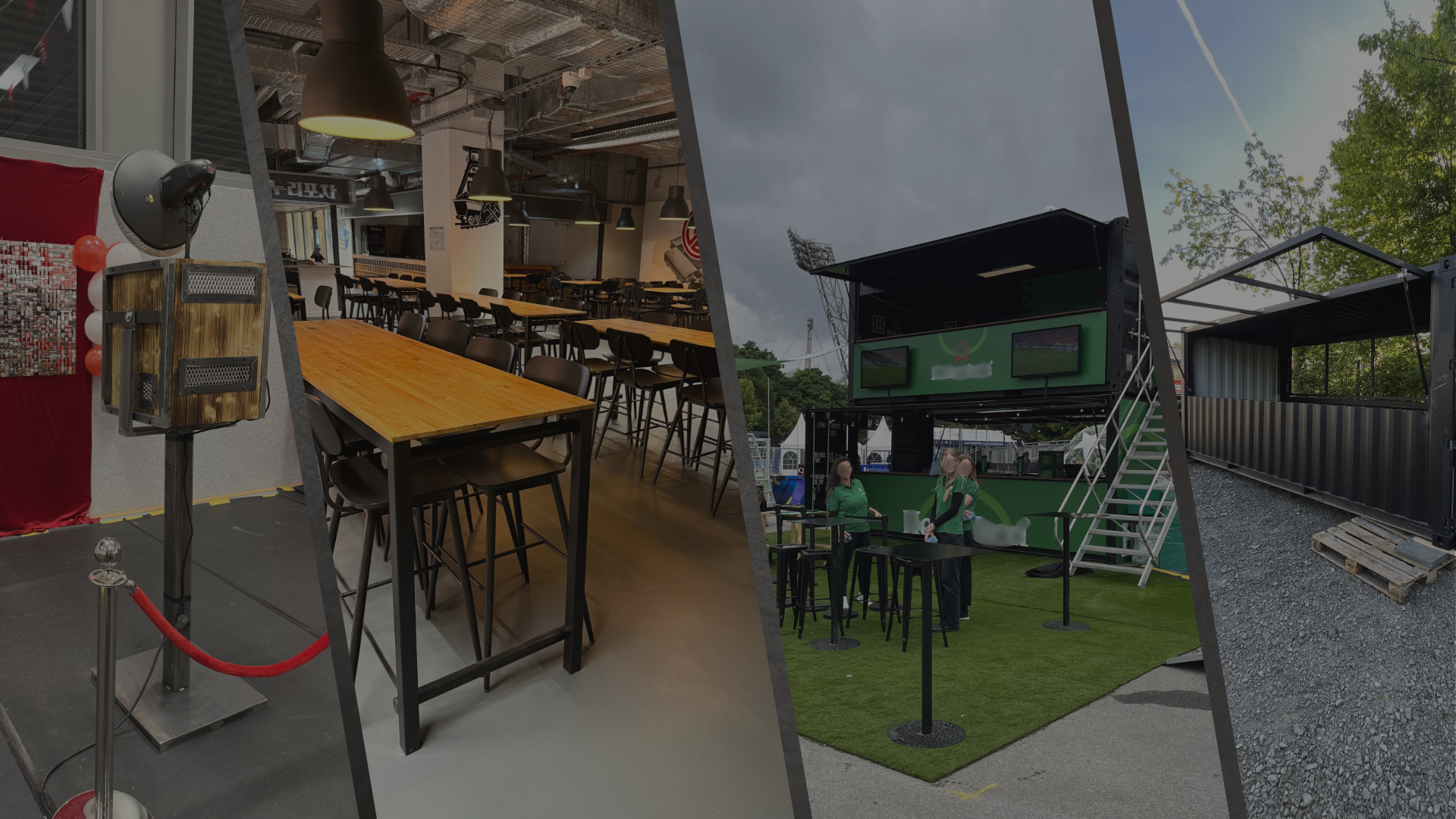 Fotoboxen, Mobiliar im Industrial Design und individuelle Eventausstattung.Für private Feiern und professionelle B2B-Events